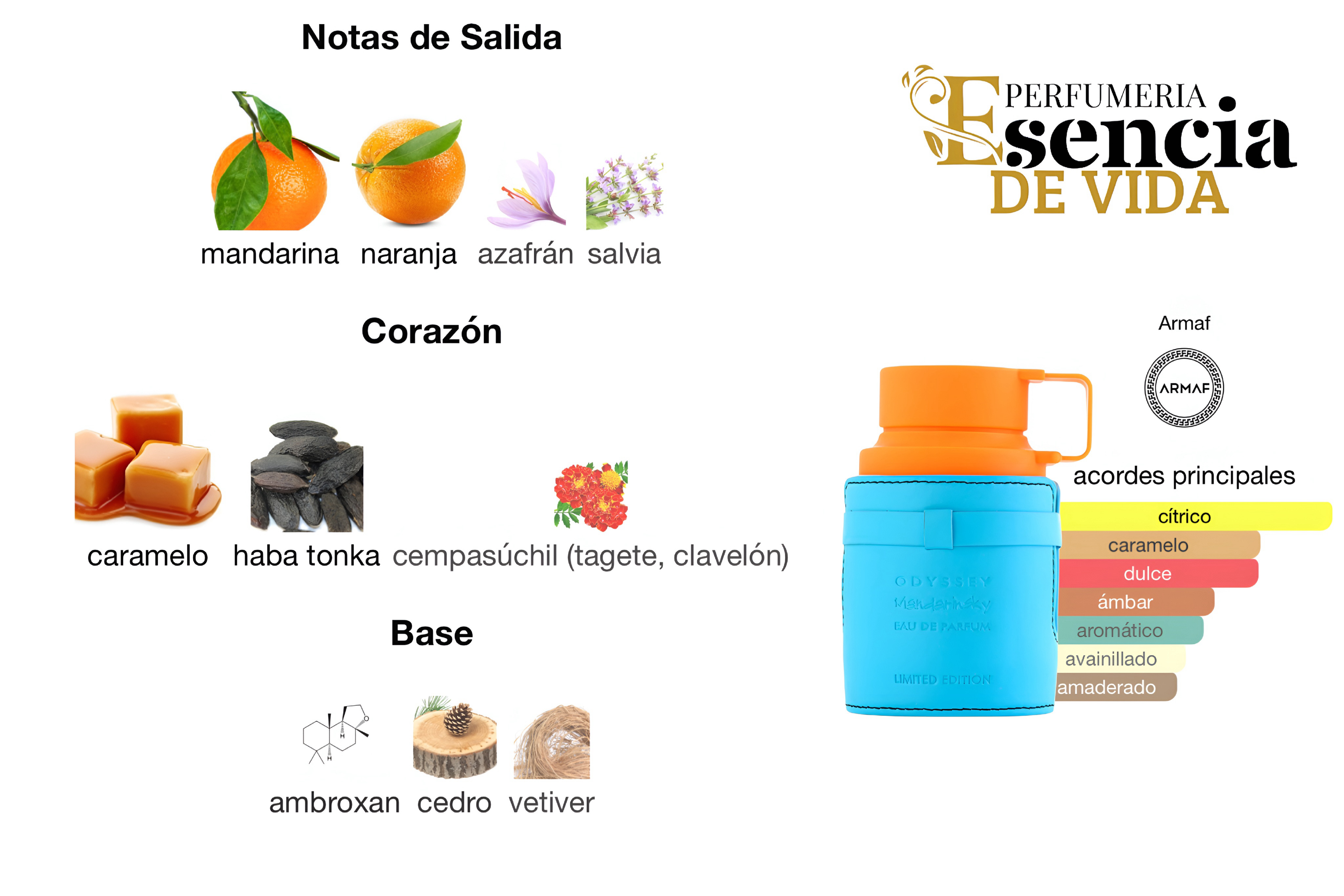 Odyssey Mandarin Sky es una fragancia masculina vibrante y cautivadora, lanzada en 2023. Su apertura cítrica con mandarina y naranja aporta frescura, mientras que las especias como el azafrán y la salvia añaden un toque de complejidad y masculinidad. En el corazón, el dulzor del caramelo y la haba tonka se equilibran con el toque floral distintivo del cempasúchil, creando un centro cálido y profundo. Las notas de fondo amaderadas de ambroxan, vetiver y cedro dan un acabado elegante y duradero, haciendo de esta fragancia una opción sofisticada para cualquier ocasión.